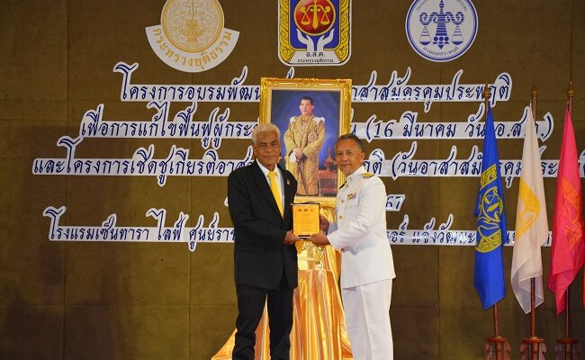 เลขานุการรัฐมนตรีว่าการกระทรวงยุติธรรม มอบโล่เชิดชูเกียรติอาสาสมัครคุมประพฤติ ผู้ทำงานด้วยใจ มุ่งมั่นแก้ไขในการช่วยเหลือผู้ถูกคุมความประพฤติให้กลับเป็นคนดีสู่สังคม