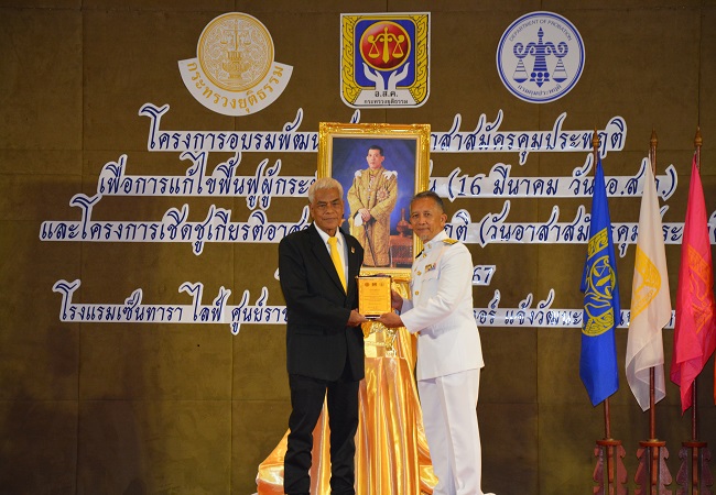 เลขานุการรัฐมนตรีว่าการกระทรวงยุติธรรม มอบโล่เชิดชูเกียรติอาสาสมัครคุมประพฤติ ผู้ทำงานด้วยใจ มุ่งมั่นแก้ไขในการช่วยเหลือผู้ถูกคุมความประพฤติให้กลับเป็นคนดีสู่สังคม