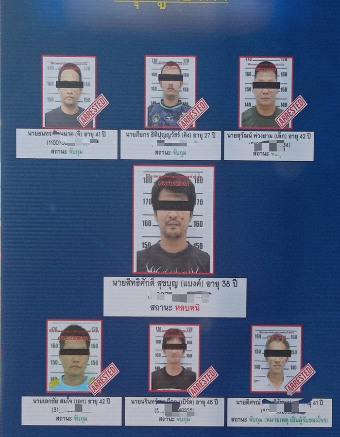 ขณะนี้เจ้าหน้าที่ตำรวจกำลังสืบสวนติดตามจับกุมผู้ต้องหาอีก 1 ราย คือ นายสิทธิศักดิ์หรือแบงค์ อายุ 38 ปี อย่างต่อเนื่อง ในความผิดฐาน “ฆ่าผู้อื่นเพื่อเอาไว้ซึ่งผลประโยชน์อันเกิดแต่การที่ตนได้กระทำความผิดอื่น เพื่อปกปิดความผิดอื่นของตน หรือเพื่อหลีกเลี่ยงให้พ้นอาญาในความผิดอื่นที่ตนได้กระทำไว้, ปล้นทรัพย์เป็นเหตุให้ผู้อื่นถึงแก่ ความตาย, ร่วมกันลักทรัพย์ในเวลากลางคืน ในเคหสถาน สถานที่ราชการหรือสถานที่ที่จัดไว้เพื่อให้บริการสาธารณะที่ตน ได้เข้าไปโดยไม่ได้รับอนุญาต โดยทำอันตรายสิ่งกีดกั้นสำหรับคุ้มครองบุคคลหรือทรัพย์ หรือโดยผ่านสิ่งเช่นว่านั้นเข้าไป ด้วยประการใด ๆ โดยร่วมกระทำความผิดด้วยกันตั้งแต่สองคนขึ้นไป โดยใช้ยานพาหนะเพื่อสะดวกแก่การกระทำผิดหรือการพาทรัพย์นั้นไป หรือเพื่อให้พ้นการจับกุม ร่วมกันบุกรุกเคหสถาน อาคารเก็บรักษาทรัพย์หรือสำนักงานในความ ครอบครองของผู้อื่น ในเวลากลางคืน โดยใช้กำลังประทุษร้าย โดยร่วมกระทำความผิดด้วยกันตั้งแต่สองคนขึ้นไป ร่วมกัน ทำให้เสียทรัพย์ และช่องโจร”