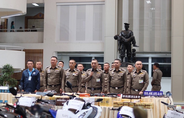 วันนี้ (4 มิ.ย.68) เวลา 11.00 น. ที่กองบัญชาการตำรวจนครบาล (บช.น.) พล.ต.ท.สยาม บุญสม ผบช.น. พร้อมด้วย พล.ต.ต.วสันต์ เตชะอัครเกษม รอง ผบช.น., พล.ต.ต.นพศิลป์ พูลสวัสดิ์ รอง ผบช.น., พล.ต.ต.ชรินทร์ โกพัฒน์ตา รอง ผบช.น., พล.ต.ต.ธวัช วงศ์สง่า รอง ผบช.น. และ พล.ต.ต.พัลลภ แอร่มหล้า รอง ผบช.น. ร่วมแถลงผลเปิดปฏิบัติการ “กรุงเทพ ปลอดภัย” ปิดล้อมตรวจค้นพื้นที่เป้าหมายในสังกัดกองบัญชาการตำรวจนครบาล