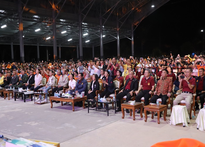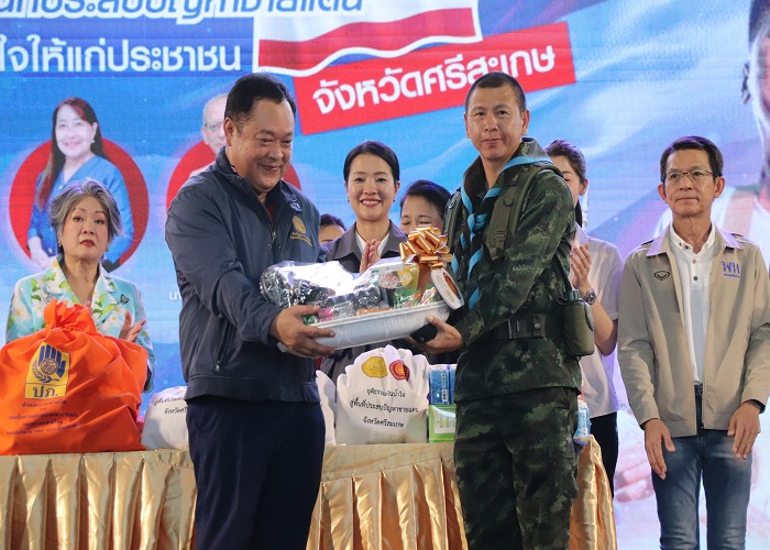เมื่อเวลา 16.00 น. วันที่ 9 ส.ค.68 ที่โรงเรียนศรีสะเกษวิทยาลัย จ.ศรีสะเกษ พ.ต.อ.ทวี สอดส่อง รัฐมนตรีว่าการกระทรวงยุติธรรม เป็นประธานในกิจกรรมฝึกวิชาชีพผู้ต้องขังด้านทักษะพิเศษ มินิคอนเสิรต์จาก “เสก โลโซ” และวงมีนบุรี เพื่อสร้างขวัญกำลังใจ มอบสิ่งของให้กับทหารและประชาชนผู้ที่ได้รับผลกระทบจากเหตุการณ์ชายแดน ไทย-กัมพูชา โดยมี นางสาวธีรรัตน์ สำเร็จวาณิชย์ รัฐมนตรีช่วยว่าการกระทรวงมหาดไทย นางจิรภา สินธุนาวา รองปลัดกระทรวงยุติธรรม นายสหการณ์ เพ็ชรนรินทร์ อธิบดีกรมราชทัณฑ์ นายสุริยา บุตรจินดา รองผู้ว่าราชการจังหวัดศรีสะเกษ นายชาญ วชิรเดช รองอธิบดีกรมราชทัณฑ์ ตลอดจนผู้บริหารกระทรวงยุติธรรม ผู้บริหารกรมราชทัณฑ์ ผู้บัญชาการเรือนจำ ผู้อำนวยการทัณฑสถาน ข้าราชการ และเจ้าหน้าที่ เข้าร่วมกิจกรรมให้กำลังใจประชาชนดังกล่าว