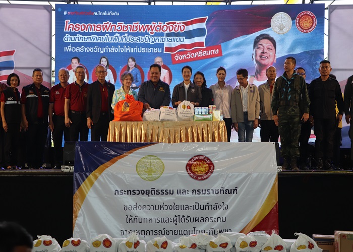 รัฐมนตรีว่าการกระทรวงยุติธรรม เปิดโครงการฝึกวิชาชีพผู้ต้องขังด้านทักษะพิเศษ จัดมินิคอนเสิรต์ “เสก โลโซ” และวงมีนบุรี เพื่อสร้างขวัญกำลังใจให้แก่ประชาชน พร้อมมอบสิ่งของจำเป็นให้กับทหารและประชาชนผู้ที่ได้รับผลกระทบจากเหตุการณ์ชายแดนไทย-กัมพูชา จังหวัดศรีสะเกษ