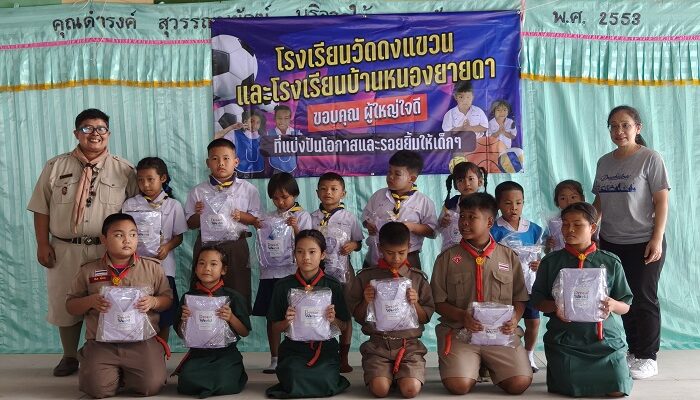 โดยสวนสนุกดรีมเวิลด์ ได้ส่งมอบให้แก่โรงเรียนวัดดงแขวน จังหวัดอุทัยธานี โดยมี คุณกำจัด กมลมาลย์ ผู้อำนวยการโรงเรียน เป็นผู้รับมอบ โอกาสนี้ ดรีมเวิลด์ ยังได้จัดเลี้ยงอาหารกลางวันแก่น้อง ๆ อีกด้วย นอกจากนี้ สวนสนุกดรีมเวิลด์ ยังได้ส่งชุดนักเรียนและอุปกรณ์การเรียนบางส่วน ไปบริจาคแก่น้อง ๆ นักเรียนในโรงเรียที่ประสบอุทกภัยจังหวัดน่าน ได้แก่ โรงเรียนน่านนคร โรงเรียนศรีสวัสดิ์วิทยาคาร โรงเรียนบ้านน้ำพาง และ โรงเรียนบ้านดอนศรีเสริมกสิกร จังหวัดน่าน ทางไปรษณีย์อีกจำนวนหนึ่ง