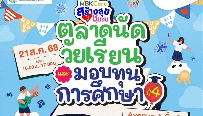 ศูนย์การค้าเอ็ม บี เค เซ็นเตอร์ เปิดพื้นที่แห่งการเรียนรู้เชิงประสบการณ์ให้น้อง ๆ นักเรียน จาก 7 โรงเรียนในเขตปทุมวัน สังกัดกรุงเทพมหานคร สวมบทบาทพ่อค้าแม่ค้ารุ่นเยาว์ นำผลงานฝีมือมาออกบูธขายของในงาน ตลาดนัดวัยเรียน ภายใต้โครงการ MBK Care สร้างสุขสู่ชุมชน โดยปีนี้จัดขึ้นเป็นปีที่ 4 ภายใต้แนวคิด “เติมฝัน ปั้นอนาคต จุดประกายการเรียนรู้ สู่วัยเรียนที่สดใส” พร้อมกิจกรรม มอบทุนการศึกษา ให้กับนักเรียน ในโรงเรียนสังกัดกรุงเทพมหานคร ในวันพฤหัสบดีที่ 21 สิงหาคมนี้ ตั้งแต่ 10.00 น. – 17.00 น. บริเวณลานอเวนิว โซน A