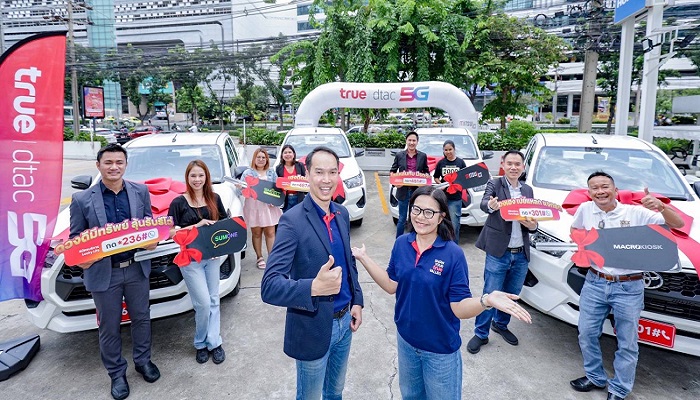 โชคดี มีดวงเฮง … ทรู 5G โดย คุณภูริโชติ วงศ์โกมลเชษฐ์ หัวหน้าฝ่ายบริการดิจิทัล และ คุณสุนิษา อนันทนุพงศ์ หัวหน้ากลุ่มงานโมบายล์คอนเทนต์ บมจ. ทรู คอร์ปอเรชั่น ส่งต่อความสุขและโชคครั้งใหญ่ ผ่านแคมเปญสุดพิเศษ “รวยคูณสอง แจกรถ” มอบรถกระบะโตโยต้า Hilux Revo Z Edition Smart Cab 4x2 2.4 Entry AT มูลค่า 719,000 บาท จำนวน 4 คัน แก่ลูกค้าผู้โชคดีทั้ง 4 ท่าน ดังนี้