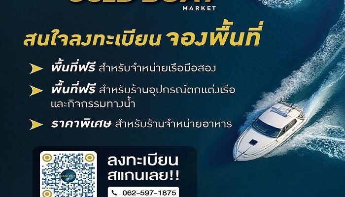 ริเวอร์เดล มารีน่า เปิดพื้นที่ฟรี งาน RIVERDALE MARINA USED BOAT MARKET ชวนผู้ประกอบการเรือมือสอง ร้านอุปกรณ์ตกแต่ง เริ่มลงทะเบียนแล้ววันนี้