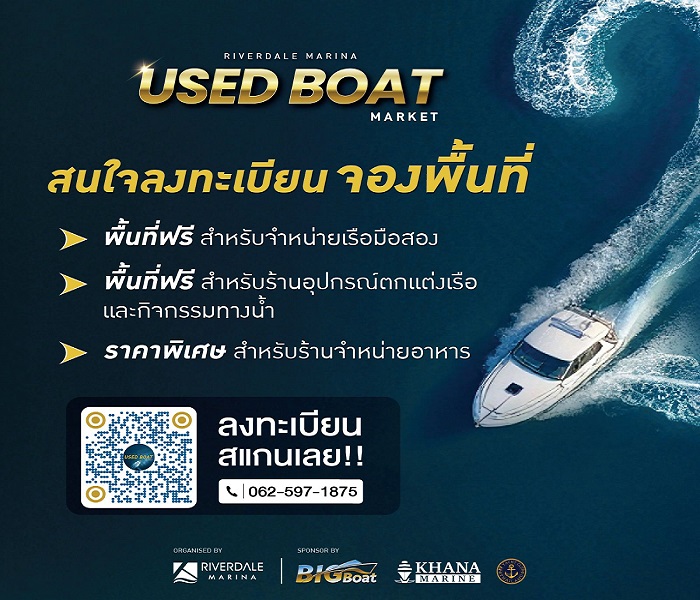 ริเวอร์เดล มารีน่า เปิดพื้นที่ฟรี งาน RIVERDALE MARINA USED BOAT MARKET ชวนผู้ประกอบการเรือมือสอง ร้านอุปกรณ์ตกแต่ง เริ่มลงทะเบียนแล้ววันนี้