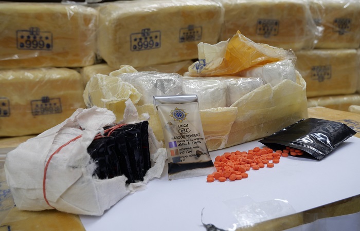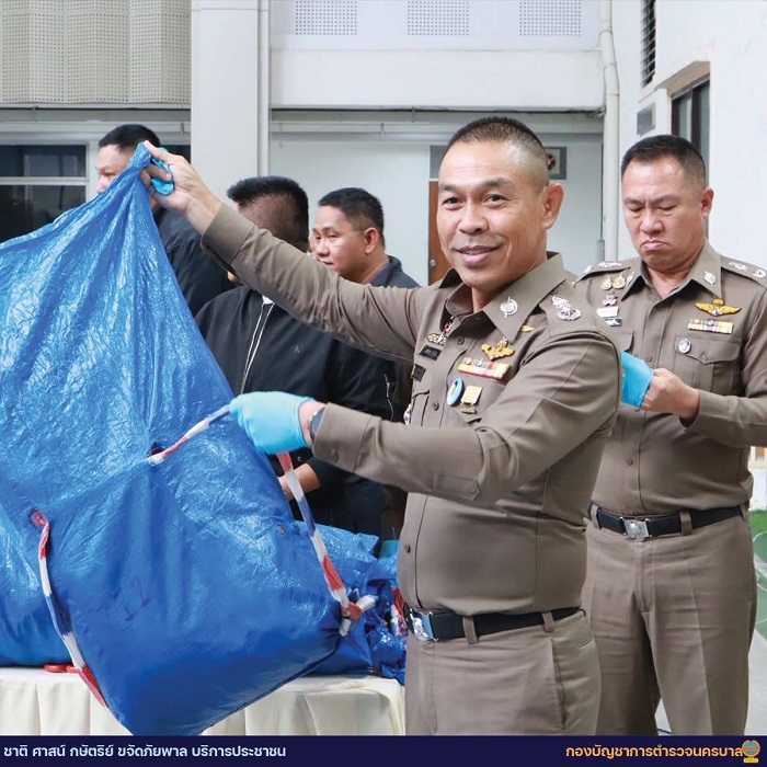 พล.ต.ท.สยาม กล่าวว่า สืบเนื่องจากเจ้าหน้าที่ฝ่ายสืบสวน สน.ร่มเกล้า สืบทราบว่ามีรถต้องสงสัย ใช้แผ่นป้ายทะเบียนปลอม มาจอดที่บริเวณลานจอดรถรายเดือนแอร์พอร์ตลิงก์ลาดกระบัง ลาน 3 แขวงลาดกระบัง เขตลาดกระบัง กรุงเทพฯ พ.ต.ท.ธเนษฐ์ สอนจันดา สว.สส.สน.ร่มเกล้า นำกำลังเจ้าหน้าที่ชุดจับกุมเฝ้าซุ่มรถคันดังกล่าว จนกระทั่งเวลาประมาณ 17.30 น. พบชายต้องสงสัยเดินมาที่รถคันดังกล่าว เจ้าหน้าที่แสดงตัวเข้าตรวจค้นภายในรถพบยาเสพติดให้โทษประเภท 1 (ยาบ้าหรือเมทแอมเฟตามีน) ห่อหุ้มด้วยกระดาษสาเทียนไขพิมพ์รูป 999 ซุกซ่อนอยู่ในกระสอบจำนวน 37 กระสอบ รวมของกลางยาบ้า 5,450,000 เม็ด