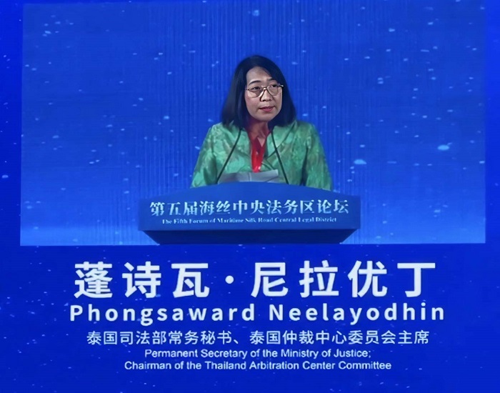 โดยวันที่ 7 ก.ย.68 นางพงษ์สวาท นีละโยธิน ปลัดกระทรวงยุติธรรม ในฐานะประธานคณะกรรมการสถาบันอนุญาโตตุลาการ (THAC) ได้ร่วมกล่าวเปิดงาน Fifth Forum of Maritime Silk Road Central Legal District จัดโดย International Commercial Dispute Prevention and Settlement Organization โดยมี นายวัลลภ นาคบัว รองปลัดกระทรวงยุติธรรม กรรมการผู้ทรงคุณวุฒิคณะกรรมการสถาบันอนุญาโตตุลาการ (THAC) นายสุริยพงศ์ ทับทิมแท้ ผู้อำนวยการสถาบันอนุญาโตตุลาการ (THAC) กระทรวงยุติธรรม เข้าร่วม ณ นครเซี่ยเหมิน มณฑลฝูเจี้ยน สาธาณรัฐประชาชนจีน