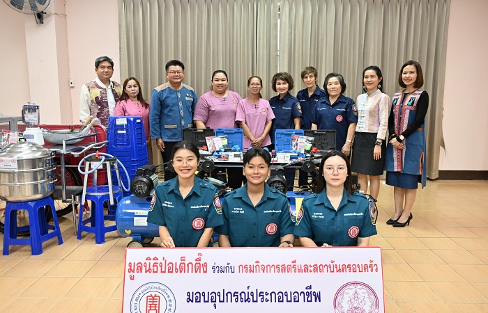นางศิริกุล โอภาสวงศ์ กรรมการและเลขาธิการ เปิดเผยว่า โครงการ ส่งเสริมอาชีพเพื่อสตรีและครอบครัว มูลนิธิป่อเต็กตึ๊ง มีวัตถุประสงค์ เพื่อมอบวัสดุอุปกรณ์ประกอบอาชีพ แก่ สตรี บุรุษ พ่อเลี้ยงเดี่ยว ผู้ด้อยโอกาสทางสังคม หรือผู้ที่มีความหลากหลายทางเพศ ที่มีความรู้และความสามารถ ขาดแคลนวัสดุอุปกรณ์ในการประกอบอาชีพ โดยได้รับความร่วมมือจากศูนย์เรียนรู้การพัฒนาสตรีและครอบครัวและสถานคุ้มครองและพัฒนาอาชีพ จำนวน 12 แห่ง ได้แก่ กรุงเทพมหานคร นนทบุรี ชลบุรี สงขลา สุราษฎร์ธานี นครราชสีมา ศรีสะเกษ ขอนแก่น ลำพูน ลำปาง เชียงราย และ พิษณุโลก คัดกรองผู้ที่ผ่านการฝึกอบรม เสริมทักษะอาชีพ ส่งมาให้มูลนิธิฯ พิจารณาตามเกณฑ์ที่กำหนดไว้ โดยมูลนิธิฯ หวังเป็นอย่างยิ่งว่า การดำเนินการโครงการดังกล่าวนี้ จะมีส่วนสนับสนุน ช่วยสร้างอาชีพ สร้างรายได้ เลี้ยงตนเองและครอบครัว ลดปัญหาความเหลื่อมล้ำในสังคม สร้างความสุขสู่ครอบครัว ชุมชน สังคม และประเทศชาติอย่างยั่งยืนต่อไป