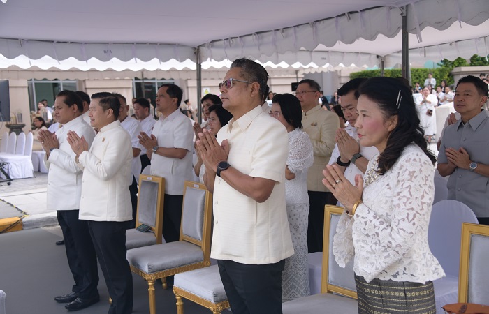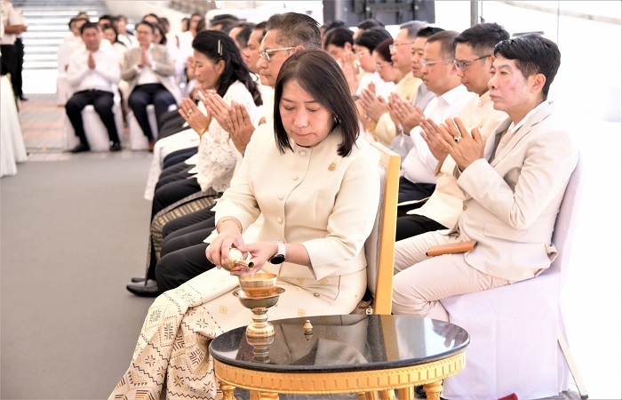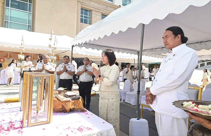 วันนี้ (25 ก.ย.68) เวลา 09.19 น. ที่บริเวณด้านหน้าอาคารกระทรวงยุติธรรม ถ.แจ้งวัฒนะ เขตหลักสี่ กรุงเทพฯ นางพงษ์สวาท นีละโยธิน ปลัดกระทรวงยุติธรรม เป็นประธานในพิธีสมโภชและบวงสรวง “พระพุทธภูมิพลาภิบาลทศพลญาณมุนี” พระพุทธรูปสำคัญประจำกระทรวงยุติธรรม เพื่อความเป็นสิริมงคลและเป็นขวัญกำลังใจแก่เจ้าหน้าที่กระทรวงยุติธรรม โดยมี นายวัลลภ นาคบัว รองปลัดกระทรวงยุติธรรม นายไตรยฤทธิ์ เตมหิวงศ์ รองปลัดกระทรวงยุติธรรม นางจิรภา สินธุนาวา รองปลัดกระทรวงยุติธรรม นายโกมล พรมเพ็ง รองปลัดกระทรวงยุติธรรม พ.ต.ท.ประวุธ วงศ์สีนิล อธิบดีกรมพินิจและคุ้มครองเด็กและเยาวชน นายแพทย์วีระกิตติ์ หาญปริพรรณ์ ผู้อำนวยการสถาบันนิติวิทยาศาสตร์ พ.ต.ท.เชน กาญจนาปัจจ์ รองอธิบดีกรมราชทัณฑ์ นายสิทธิ สุธีวงศ์ รองอธิบดีกรมคุมประพฤติ คณะผู้บริหารของหน่วยงานในสังกัดกระทรวงยุติธรรม ผู้บริหารของหน่วยงานในกำกับกระทรวงยุติธรรม บุคลากร และเจ้าหน้าที่ที่เกี่ยวข้อง เข้าร่วมพิธี