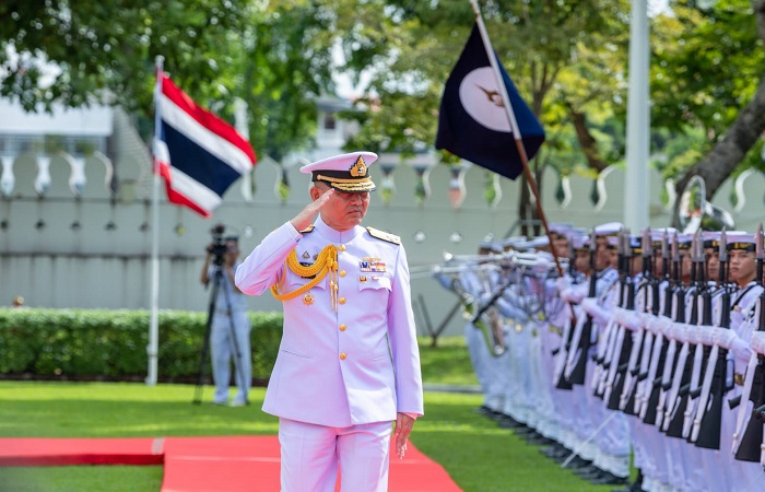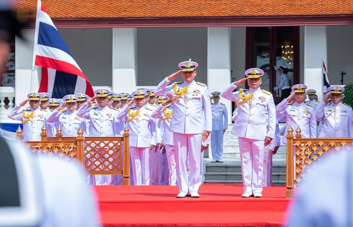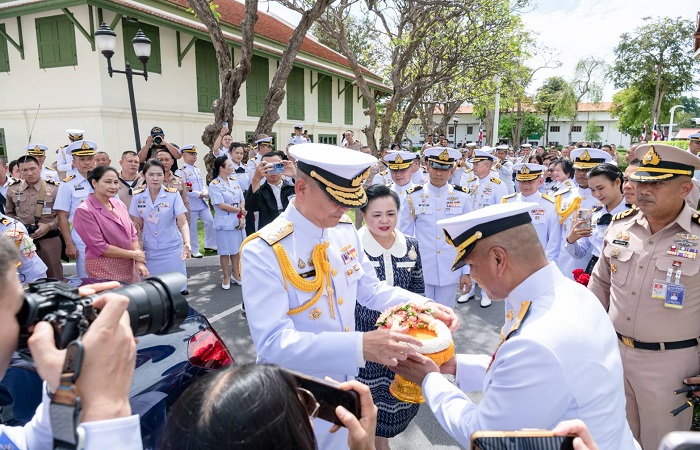 โดยในเวลา 09.30 น. พล.ร.อ.จิรพล ว่องวิทย์ ผู้บัญชาการทหารเรือ (ท่านเก่า) และ พล.ร.อ.ไพโรจน์ เฟื่องจันทร์ ผู้บัญชาการทหารเรือ (ท่านใหม่) ได้เดินทางถึงสนามหน้าท้องพระโรง โดย พล.ร.อ.จิรพล ได้ตรวจแถวกองทหารเกียรติยศ