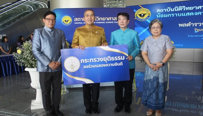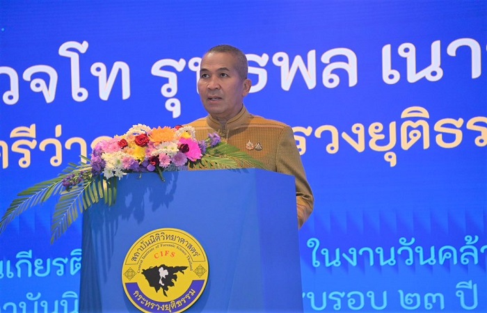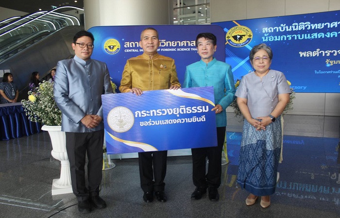 โดย พล.ต.ท.รุทธพล เนาวรัตน์ รัฐมนตรีว่าการกระทรวงยุติธรรม กล่าวว่า “สถาบันนิติวิทยาศาสตร์ถือเป็นหน่วยงานด้านอำนวยความยุติธรรมหลักที่มีบทบาทสำคัญยิ่ง ในการขับเคลื่อนกระบวนการยุติธรรมของประเทศ ด้วยภารกิจในการพิสูจน์ข้อเท็จจริงทางวิทยาศาสตร์ เพื่อความเป็นธรรม ความถูกต้อง และความโปร่งใสในทุกมิติ ตามนโยบายของรัฐบาล ตลอดเวลาที่ผ่านมา บุคลากรของสถาบันนิติวิทยาศาสตร์ได้แสดงให้เห็นถึงความมุ่งมั่น ทุ่มเท และเสียสละ ทำให้สถาบันนิติวิทยาศาสตร์เป็นที่ยอมรับและภาคภูมิใจทั้งในระดับชาติและนานาชาติ”