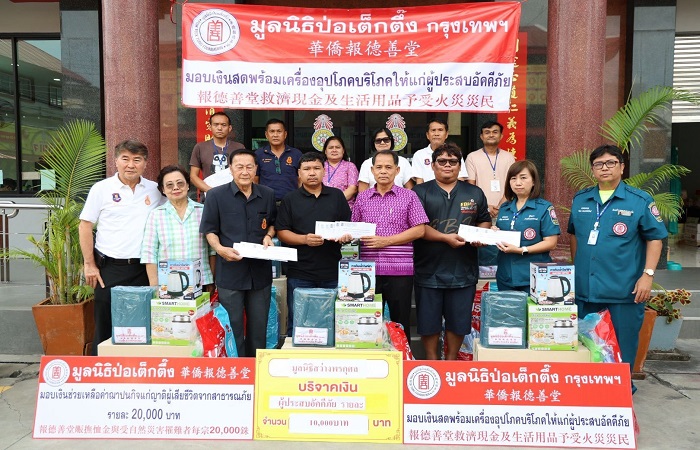 มูลนิธิป่อเต็กตึ๊ง รุดลงพื้นที่ซับน้ำตา เยียวยาผู้ประสบอัคคีภัย บริเวณตำบลท่าประดู่ อำเภอเมือง จังหวัดระยอง พร้อมมอบเงินช่วยเหลือค่าฌาปนกิจแก่ครอบครัวผู้เสียชีวิตรวม 7 ราย ณ บริเวณมูลนิธิสว่างพรกุศล จังหวัดระยอง