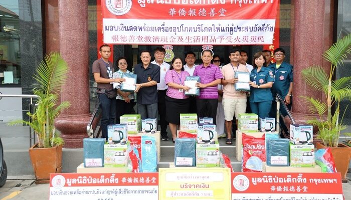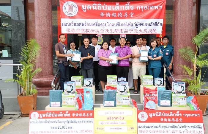 มูลนิธิป่อเต็กตึ๊ง รุดลงพื้นที่ซับน้ำตา เยียวยาผู้ประสบอัคคีภัย บริเวณตำบลท่าประดู่ อำเภอเมือง จังหวัดระยอง พร้อมมอบเงินช่วยเหลือค่าฌาปนกิจแก่ครอบครัวผู้เสียชีวิตรวม 7 ราย ณ บริเวณมูลนิธิสว่างพรกุศล จังหวัดระยอง