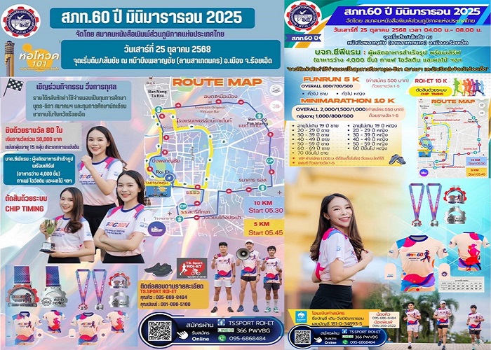 สมาคมหนังสือพิมพ์ส่วนภูมิภาคแห่งประเทศไทย เตรียมจัดกิจกรรม สภท.60ปี เดิน-วิ่งการกุศล มินิมาราธอน 2025 “วิ่งเพื่อการศึกษา” วันที่ 25 ตุลาคม 2568 ณ บึงพลาญชัย จังหวัดร้อยเอ็ด
