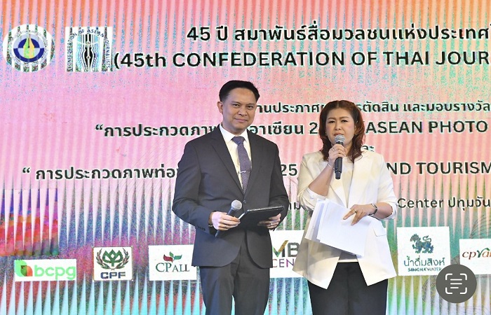 วันนี้ (15 ต.ค.68) เวลา 13.30 น. ที่ชั้น 1 ศูนย์การค้าเอ็ม บี เค เซ็นเตอร์ เขตปทุมวัน กรุงเทพฯ นายนคร วีระประวัติ ประธานสมาพันธ์สื่อมวลชนแห่งประเทศไทย ได้จัดการประกาศผลและมอบรางวัล “การประกวดภาพข่าวอาเซียน 2025” และ “การประกวดภาพท่องเที่ยวไทย 2025” ในโอกาสครบรอบ 45 ปี สมาพันธ์สื่อมวลชนแห่งประเทศไทย โดยมี นายนิธี สีแพร รองผู้ว่าการด้านสื่อสารการตลาด การท่องเที่ยวแห่งประเทศไทย (ททท.) เป็นผู้แทน นายอรรถกร ศิริลัทธยากร รมว.การท่องเที่ยวและกีฬา เป็นประธานมอบรางวัล มี นายเทพชัย หย่อง ประธานจัดการประกวดภาพข่าวอาเซียน 2025 และ นางสาวสหัพย์ภัค โชควิจิตรกุล กรรมการผู้จัดการศูนย์การค้าเอ็ม บี เค เซ็นเตอร์ บริษัท เอ็มบีเค เซอร์วิส โซลูชั่น จำกัด ร่วมเป็นสักขีพยาน รวมทั้งที่ปรึกษา กรรมการสมาพันธ์ฯ แขกผู้มีเกียรติ และสื่อมวลชน เข้าร่วม