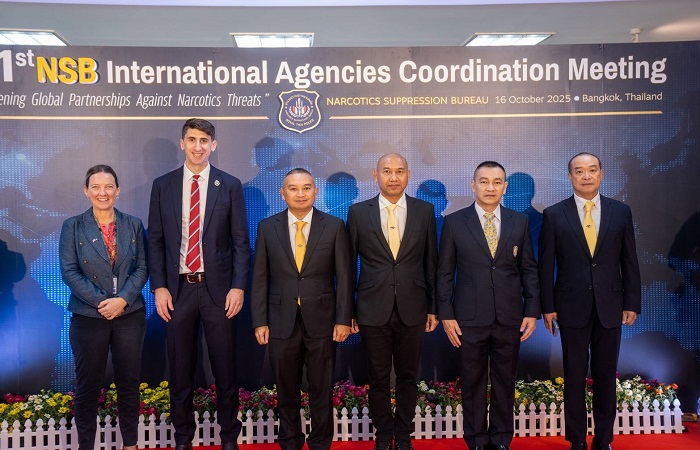 พล.ต.ท.อาชยน ไกรทอง ผู้บัญชาการตำรวจปราบปรามยาเสพติด (ผบช.ปส.) จัดงาน The 1st NSB – International Agencies Coordination Meeting ประชุมหารือเจ้าหน้าที่ประสานงานด้านยาเสพติดและหน่วยงานต่างประเทศที่มีความร่วมมือด้านการปราบปรามยาเสพติดกับประเทศไทย โดยมีสมาชิกจาก 17 ประเทศ ประกอบด้วย ได้แก่ ออสเตรเลีย ญี่ปุ่น นิวซีแลนด์ สหรัฐอเมริกา สวิสเซอร์แลนด์ เยอรมัน อิตาลี ไอร์แลนด์ สเปน แคนาดา ออสเตรีย อิสราเอล มาเลเซีย สิงคโปร์ ซาอุดิอาระเบียอินโดนีเซีย ฟิลิปปินส์ และหน่วยงานด้านการปราบปรามยาเสพติด อาทิ Australian Federal Police (AFP), U.S. Drug Enforcement Administration (DEA), German Federal Criminal Police Office (BKA), Embassy of Japan, Royal Canadian Mounted Police (RCMP), Austrian Ministry of Interior เมื่อวันที่ 16 ต.ค.68 ที่ห้องพรหมนอก กองบัญชาการตำรวจปราบปรามยาเสพติด (บช.ปส.)