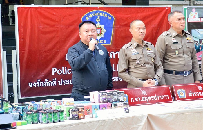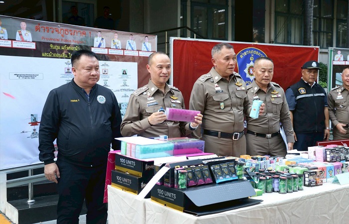 นอกจากนี้ ยังได้แถลงผลปฏิบัติการของ บก.สส.ภ.1 ที่ได้จับกุมบุหรี่ไฟฟ้า หลังสืบสวนหาข่าวเกี่ยวกับกรณีผู้ลักลอบขายบุหรี่ไฟฟ้า ก่อนทราบว่ามีผู้ลักลอบจำหน่ายทางสื่อโฆษณาออนไลน์ใน X โดยใช้ชื่อว่า High moon เปิดลักลอบจำหน่าย บุหรี่ไฟฟ้าผสมกัญชา ภายหลังจากนำกำลังเข้าตรวจค้น บ้านพักหลังหนึ่ง ย่านภาษีเจริญ กรุงเทพฯ พบของกลางจำนวน 12,000 ชิ้น เป็นบุหรี่ไฟฟ้า และน้ำยา มูลค่ากว่า 2.5 ล้านบาท