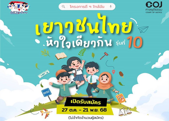 “ศาลยุติธรรม” สานต่อ “โครงการเยาวชนไทยหัวใจเดียวกัน” รุ่นที่ 10 มุ่งเสริม “วัคซีนทางปัญญา” สร้างภูมิคุ้มกันให้แก่เยาวชนชายแดนใต้ นำความรู้พัฒนาประเทศชาติอย่างยั่งยืน