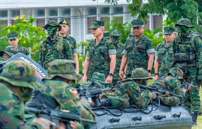 เมื่อวันที่ 28 ต.ค.68 พล.ร.ต.โยธิน ธนะมูล ผู้บัญชาการกองพลนาวิกโยธิน (ผบ.พล.นย.) ตรวจความพร้อมรบ กำลังพล อาวุธ ยุทโธปกรณ์ ของกองพันทหารราบหนุนกองกำลังจันทบุรีและตราด (พัน.ร.หนุน กจต.) ณ ลานสวนสนาม กรมทหารราบที่ 1 กองพลนาวิกโยธิน ค่ายพระมหาเจษฎาราชเจ้า อ.สัตหีบ จ.ชลบุรี และตรวจความพร้อมรบ ของร้อยเฉพาะกิจนาวิกโยธิน (ร้อย.ฉก.นย.) ณ กองพันลาดตระเวน กองพลนาวิกโยธิน อ.สัตหีบ จ.ชลบุรี