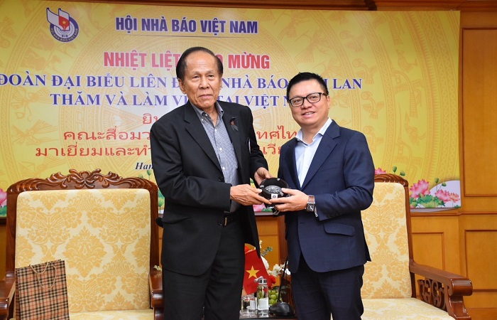ด้าน นายชวรงค์ลิมป์ปัทมปาณี ประธานสภาการสื่อมวลชนแห่งชาติ และที่ปรึกษาสมาพันธ์สื่อมวลชนแห่งประเทศไทย กล่าวว่า “เรื่องการใช้เอไอ และเฟคนิวส์ เป็นปัญหาที่ประเทศไทยเตรียมการรับมือไว้สูง นอกจากมีการส่งเสริมให้สื่อนำเอไอมาใช้ในการผลิตสื่อมากขึ้น ทุกองค์กรมีการฝึกอบรม เรียนรู้ และใช้เอไอให้มีประโยชน์ มีการฝึกอบรมที่มีทั้งการออกแบบ นำผู้เชี่ยวชาญไทยมาอบรมและองค์กรต่างชาติ เช่น กูเกิ้ล มาร่วมด้วย อย่างการใช้เอไอมีการสอนให้ใช้เอไอมาตรวจสอบเฟคนิวส์ด้วย ปีหน้าก็จะเชิญสื่อมวลชนเวียดนามไปชมการใช้เอไอแก้ปัญหาของไทยด้วย ในการเผชิญปัญหาดังกล่าว สมาพันธ์สื่อมวลชนแห่งประเทศไทยและสมาคมนักข่าวเวียดนาม จะมีความร่วมมือต่อเนื่องกันต่อไป เพื่อความเข้าใจอันดีของประชาชนทั้ง 2 ประเทศ ส่วนการประชุมกรรมการบริหารสมาพันธ์สื่อมวลชนแห่งอาเซียนปีหน้า ควรเสนอให้เชิญสมาคมนักข่าวติมอร์เลสเตที่เพิ่งเข้าเป็นสมาชิกอาเซียนเข้าร่วมสังเกตการณ์ด้วย ก่อนจะรับเข้าเป็นสมาชิกต่อไป”