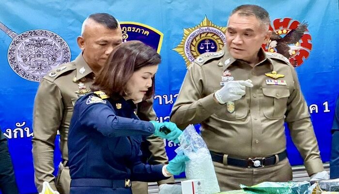ผบช.ภ.1 แถลงจับกุมเครือข่ายนักขนยาเสพติดตะวันออก ผู้ต้องหา 2 ราย ยึดคีตามีน 300 กิโลกรัม มูลค่ากว่า 150 ล้านบาท