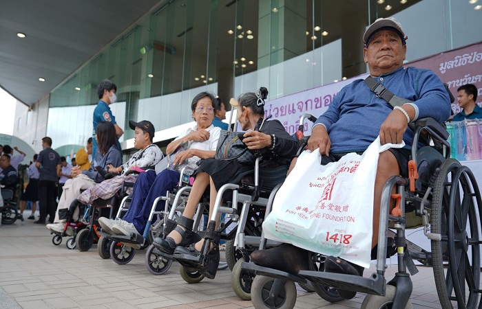 สำหรับการช่วยเหลือผู้พิการ มูลนิธิป่อเต็กตึ๊ง โดยฝ่ายสังคมสงเคราะห์ ได้ริเริ่มดำเนินการและขยายโครงการต่อเนื่องเรื่อยมา ด้วยความตระหนักถึงความยากลำบากในการดำรงชีวิต เพื่อการส่งเสริมและพัฒนาคุณภาพชีวิต อาทิ โครงการ “ป่อเต็กตึ๊ง สงเคราะห์สังคม” โดยการมอบเข็นวีลแชร์แก่ผู้พิการ พร้อมมอบค่าพาหนะสำหรับผู้ที่เดินทางมารับ ซึ่งขณะนี้ได้กระจายความช่วยเหลือไปสู่ผู้พิการยากไร้ในส่วนภูมิภาค นอกจากนี้ มูลนิธิฯ ยังให้ความช่วยเหลือโดยผ่าน หรือร่วมกับโครงการ องค์กร และหน่วยงานต่าง ๆ อาทิ การสนับสนุนค่าพาหนะ และเครื่องอุปโภคบริโภค ให้แก่ผู้รับขาเทียม ช่างและอาสาสมัคร ในโครงการออกหน่วยทำขาเทียมพระราชทานเคลื่อนที่ การมอบของขวัญเพื่อเป็นขวัญและกำลังใจแก่ผู้พิการ เนื่องในวันคนพิการ โดยร่วมกับสภาสังคมสงเคราะห์แห่งประเทศไทย ในพระบรมราชูปถัมภ์ และในวันจันทร์นี้ (10 พฤศจิกายน พ.ศ. 2568) มูลนิธิฯ กำหนดมอบไม้เท้าขาวแก่ผู้พิการทางสายตา ผ่านมูลนิธิช่วยคนตาบอดแห่งประเทศไทย ในพระบรมราชินูปถัมภ์ สมาคมคนตาบอดแห่งประเทศไทย และมูลนิธิธรรมิกชนเพื่อคนตาบอดในประเทศไทย ในพระบรมราชูปถัมภ์ รวมงบประมาณการช่วยเหลือผู้พิการ ในปี 2568 ณ ปัจจุบัน คิดเป็นมูลค่ากว่า 2 ล้านบาท