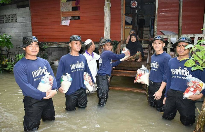 พล.ร.อ.ไพโรจน์ เฟื่องจันทร์ ผู้บัญชาการทหารเรือ (ผบ.ทร.) ได้ตระหนักถึงความความเดือดร้อนของประชาชน จึงได้สั่งการให้ศูนย์บรรเทาสาธารณภัยกองทัพเรือในพื้นที่ต่าง ๆ เตรียมความพร้อมทั้งกำลังพล ยุทโธปกรณ์ และยานพาหนะ เพื่อให้ความช่วยเหลือประชาชนในพื้นที่รับผิดชอบโดยทันที และประสานงานด้านการเตือนภัยและการช่วยเหลือประชาชน กับหน่วยงานในพื้นที่อย่างใกล้ชิด รวมทั้งสำรวจพื้นที่เสี่ยงน้ำท่วมขังหรือน้ำท่วมซ้ำซากที่มีผลกระทบต่อประชาชนในพื้นที่ และให้การช่วยเหลือในลักษณะการป้องกันเชิงรุก เช่น การขนย้ายสิ่งของขึ้นที่สูง เพื่อลดผลกระทบจากความเสียหายที่อาจจะเกิดขึ้น