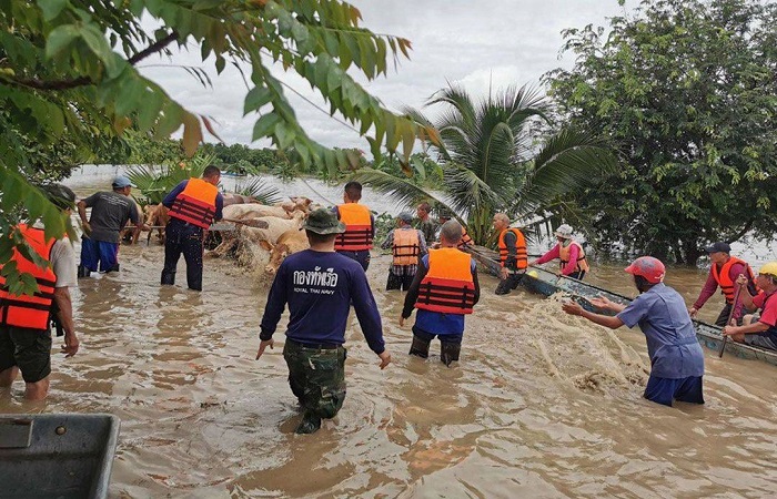 พล.ร.อ.ไพโรจน์ เฟื่องจันทร์ ผู้บัญชาการทหารเรือ (ผบ.ทร.) ได้ตระหนักถึงความความเดือดร้อนของประชาชน จึงได้สั่งการให้ศูนย์บรรเทาสาธารณภัยกองทัพเรือในพื้นที่ต่าง ๆ เตรียมความพร้อมทั้งกำลังพล ยุทโธปกรณ์ และยานพาหนะ เพื่อให้ความช่วยเหลือประชาชนในพื้นที่รับผิดชอบโดยทันที และประสานงานด้านการเตือนภัยและการช่วยเหลือประชาชน กับหน่วยงานในพื้นที่อย่างใกล้ชิด รวมทั้งสำรวจพื้นที่เสี่ยงน้ำท่วมขังหรือน้ำท่วมซ้ำซากที่มีผลกระทบต่อประชาชนในพื้นที่ และให้การช่วยเหลือในลักษณะการป้องกันเชิงรุก เช่น การขนย้ายสิ่งของขึ้นที่สูง เพื่อลดผลกระทบจากความเสียหายที่อาจจะเกิดขึ้น