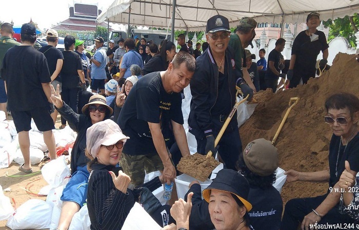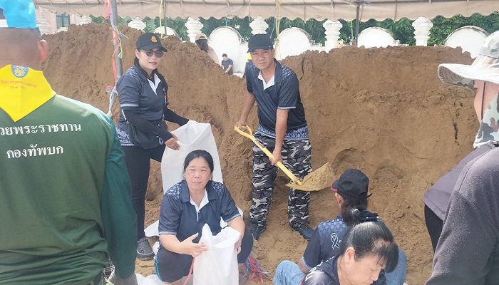 เมื่อวันที่ 10 พ.ย.68 ที่วัดกู้ อำเภอปากเกร็ด จ.นนทบุรี “ลุงซานต้า เมืองนนท์” นายทองใบ เสริฐสอน สจ.จังหวัดนนทบุรี ได้นำน้ำดื่มและเครื่องดื่มชูกำลังไปมอบให้แก่คณะผู้บริหารและสมาชิกสภาเทศบาลนครปากเกร็ด, คณะกรรมการชุมชน, อสม., ข้าราชการ, เจ้าหน้าที่เทศบาล, ทหาร, ตำรวจ และพี่น้องประชาชนชาวปากเกร็ด ที่มีจิตอาสาร่วมใจกันกรอกกระสอบทรายเป็นจำนวนมาก ทั้งนี้เพื่อนำกระสอบทรายนำไปทำคันกั้นน้ำป้องกันน้ำท่วม ที่มีปริมาณน้ำเพิ่มสูงขึ้น ป้องกันพื้นที่เสี่ยงหลายจุดภายในเขตเทศบาลนครปากเกร็ด