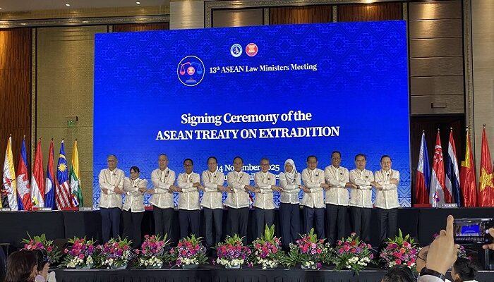 เมื่อวันที่ 14 พ.ย.68 ที่สาธารณรัฐฟิลิปปินส์ พล.ต.ท.รุทธพล เนาวรัตน์ รัฐมนตรีว่าการกระทรวงยุติธรรม (รมว.ยธ.) ในฐานะผู้แทนรัฐบาลแห่งราชอาณาจักรไทย ได้เข้าร่วมพิธีลงนามสนธิสัญญาอาเซียนว่าด้วยการส่งผู้ร้ายข้ามแดน ร่วมกับผู้แทนรัฐบาลของประเทศสมาชิกอาเซียน รวมทั้งสิ้น 11 ประเทศ