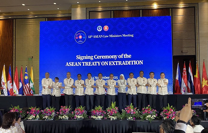เมื่อวันที่ 14 พ.ย.68 ที่สาธารณรัฐฟิลิปปินส์ พล.ต.ท.รุทธพล เนาวรัตน์ รัฐมนตรีว่าการกระทรวงยุติธรรม (รมว.ยธ.) ในฐานะผู้แทนรัฐบาลแห่งราชอาณาจักรไทย ได้เข้าร่วมพิธีลงนามสนธิสัญญาอาเซียนว่าด้วยการส่งผู้ร้ายข้ามแดน ร่วมกับผู้แทนรัฐบาลของประเทศสมาชิกอาเซียน รวมทั้งสิ้น 11 ประเทศ