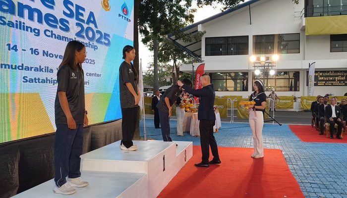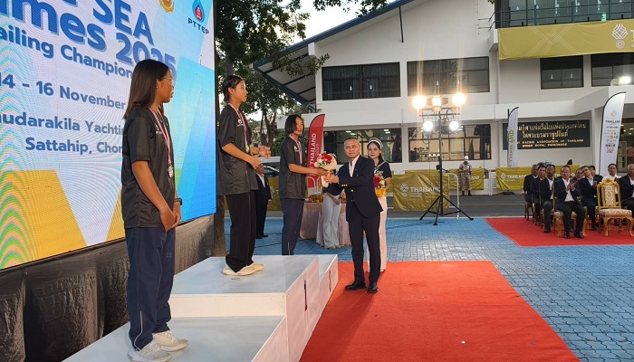 เมื่อเวลา 17.00 น. วันที่ 16 พ.ย.68 ที่ศูนย์สมุทรกีฬา อ.สัตหีบ จ.ชลบุรี พล.ร.อ.สมประสงค์ นิลสมัย นายกสมาคมกีฬาแข่งเรือใบแห่งประเทศไทย ในพระบรมราชูปถัมภ์ เป็นประธานในพิธีมอบรางวัลและปิดการแข่งขันเรือใบรายการ Pre SEA Game