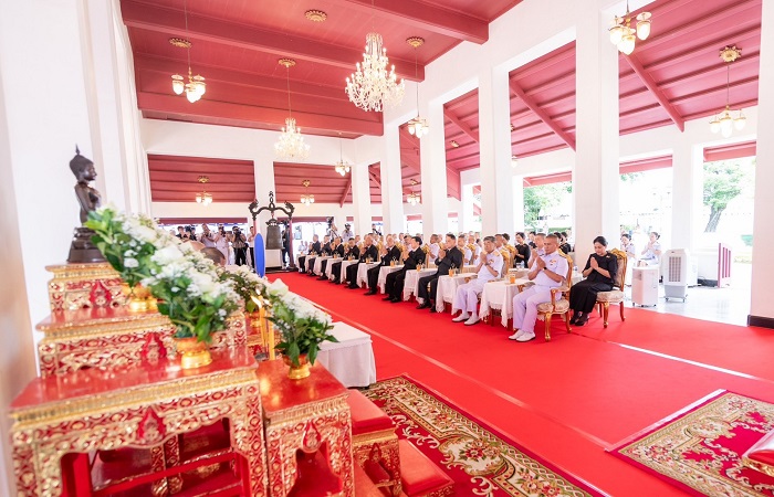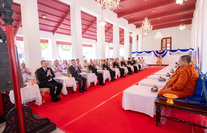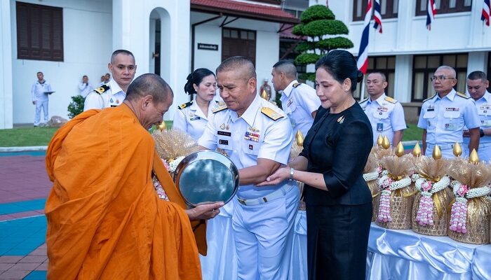 วันนี้ (20 พ.ย.68) เวลา 10.00 น. พล.ร.อ.ไพโรจน์ เฟื่องจันทร์ ผู้บัญชาการทหารเรือ (ผบ.ทร.) พร้อมด้วย นางอารียา เฟื่องจันทร์ นายกสมาคมภริยาทหารเรือ เป็นประธานในพิธีทำบุญทางศาสนาเพื่อความเป็นสิริมงคล เนื่องในวันกองทัพเรือประจำปี 2568 โดยมี อดีตผู้บัญชาการทหารเรือ หัวหน้าหน่วยขึ้นตรงกองทัพเรือ และนายทหารชั้นผู้ใหญ่ของกองทัพเรือเข้าร่วมพิธี ประกอบด้วย พิธีทำบุญประจำปีและพิธีทักษิณานุปทาน เพื่อความเป็นสิริมงคล โดยนิมนต์พระสงฆ์ทรงสมณศักดิ์จากวัดต่าง ๆ 10 รูป โดยมี พระธรรมวชิรเมธี เจ้าอาวาสวัดหงส์รัตนารามราชวรวิหาร เป็นประธานฝ่ายสงฆ์ ณ ท้องพระโรง พระราชวังเดิม