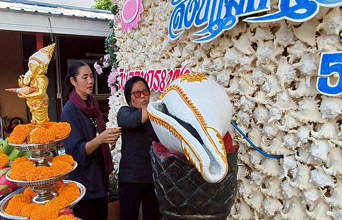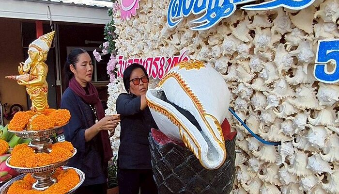บ้านสังข์แม่กำไล โดย แม่กำไล หวังประกอบกุล เปิดบริการอาบน้ำมนต์ “มหาสังข์มงคลวนขวา” ขนาด 1 เมตร แห่งแรกในประเทศไทย