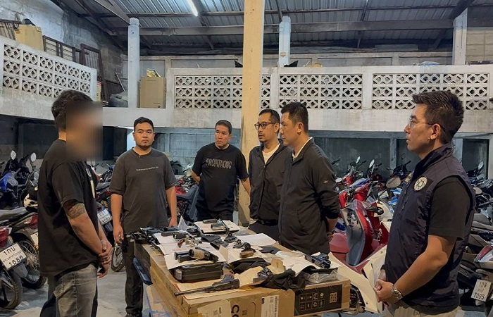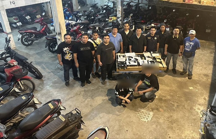 เมื่อเวลา 06.00 น. วันที่ 21 พ.ย.68 พล.ต.ต.วรชาติ แสนคำ ผบก.สส.ภ.1 พ.ต.อ.ประธาน นันทกอบกุล, พ.ต.อ.พีรศักดิ์ รอดบน, พ.ต.อ.วิศิษฏ์ มะอักษร, พ.ต.อ.วิทิต จันทร์เอี่ยม รอง ผบก.สส.ภ.1, พ.ต.อ.มณเทียร เบ้าทอง รอง ผบก.ปฏิบัติราชการ บก.สส.ภ.1, พ.ต.อ.นัฎฐพงษ์ ศรีเพ็ญประภา ผกก.สส.2 บก.สส.ภ.1, พ.ต.ท.ปรัชญ์ อุปริกชาติพงษ์ รอง ผกก.สส.2ฯ, พ.ต.ท.ดนัยพร หาญกร รอง ผกก.สส.2ฯ, พ.ต.ท.ณัฐพงศ์ หอมดี สว. กก.สส.2ฯ, ร.ต.อ.พิพัฒน์ สุดเส้นผม รอง สว.กก.สส.2 และเจ้าหน้าที่ตำรวจชุดจับกุม กก.สส.2 บก.สส.ภ.1 ร่วมกันจับกุม นายณัฐจักษ์ธรรม เฉลิมวัฒน์ อายุ 39 ปี และ นางอรพิน เฉลิมวัฒน์ อายุ 39 ปี พร้อมของกลาง รถจักรยานยนต์ 72 คัน รถยนต์ 23 คัน อาวุธปืน 12 กระบอก โทรศัพท์มือถือ 2 เครื่อง