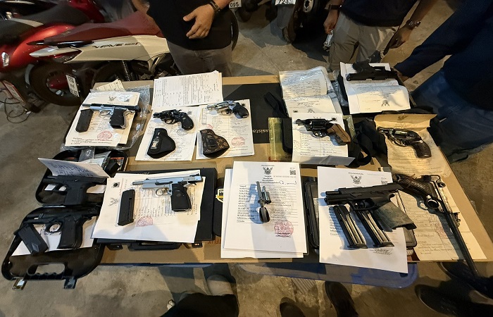 โดยจับกุมในข้อหา “ตั้งโรงรับจำนำโดยไม่ได้รับอนุญาตจากนายทะเบียน ร่วมกันประกอบธุรกิจให้สินเชื่อส่วนบุคคลภายใต้การกำกับโดยมิได้รับอนุญาต ให้บุคคลอื่นกู้ยืมเงินโดยคิดดอกเบี้ยเกินกว่าอัตราที่กฎหมายกำหนด มีอาวุธปืนไว้ในความครอบครองโดยไม่ได้รับอนุญาต”
