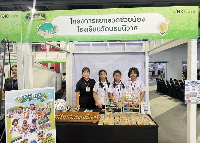 รวมถึง 4 โรงเรียนต้นแบบในพื้นที่ของศูนย์การค้าในเครือเอ็ม บี เค ไม่ว่าจะเป็น โรงเรียนวัดบรมนิวาส โรงเรียนแก่นทองอุปถัมภ์ โรงเรียนสุเหร่าใหม่ โรงเรียนชุมชนวัดบางกะดี ที่เข้าร่วมกิจกรรม “แยกขวด ช่วยน้อง” ภายใต้โครงการ ข.ขวดรักษ์โลก ของทางเอ็ม บี เค เพื่อเสริมความรู้เรื่องการคัดแยกขยะ การบริหารจัดการขยะ พร้อมนำขวดพลาสติกที่ได้จากการคัดแยกขยะไปทำเป็นกระเป๋านักเรียนอัพไซเคิล ตอบสนองเป้าลดก๊าซเรือนกระจกสุทธิเป็นศูนย์ มาร่วมกันเล่าถึงการต่อยอดถึงการคัดแยกขยะเพิ่มเติมจากขวดพลาสติก ด้วยการนำฝาขวดน้ำพลาสติกมาผลิตเป็นกระเป๋า ผลิตเป็นพวงกุญแจ ทำให้เด็ก ๆ ในโรงเรียนใช้เวลาว่างให้เป็นประโยชน์ มีรายได้เสริม รวมถึงการคัดแยกขยะจากเศษอาหาร ก็นำมาทำเป็นปุ๋ยหมัก อีกด้วย