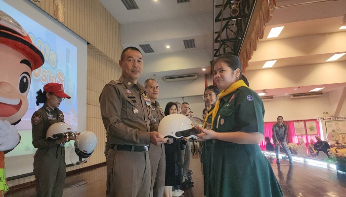 พร้อมกันนี้ยังมีกิจกรรมแจกหมวกนิรภัย ส่งต่อความปลอดภัยสู่เด็กไทยในช่วงนักเรียนที่โดยสารมาโรงเรียนด้วยรถจักรยานยนต์ได้สวมใส่เพื่อเป็น “เกราะป้องกันภัย” ใบแรกให้เยาวชนไทยยุคใหม่ และเป็นจุดเริ่มต้นสำคัญในการป้องกันอุบัติเหตุและเกิดอันตรายในระหว่างที่อยู่บนท้องถนน และยังมีกิจกรรมการข้ามทางม้าลายที่ถูกต้องและปลอดภัย รวมไปถึงการปฐมพยาบาลเบื้องต้นในกรณีอาหารติดคอ โดยวิทยากรจาก บก.จร.