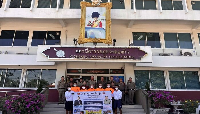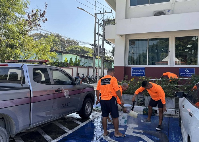 วันนี้ (1 ธ.ค.68) ที่สภ.คลองกิ่ว อ.บ้านบึง จ.ชลบุรี นายเกียรติกร ปัทมทัตต์ ผู้บัญชาการเรือนจำกลางชลบุรี พร้อมด้วย น.ส.สุดา สุวรรณรักษ์ ผู้อำนวยการส่วนพัฒนาผู้ต้องขัง นำเจ้าหน้าที่และผู้ต้องราชทัณฑ์ จัดกิจกรรม “ช่างอาสาสร้างสุข” ให้บริการสังคม ระหว่างวันที่ 1 -2 ธันวาคม 2568 ซึ่งเป็นหนึ่งในกิจกรรม “ราชทัณฑ์รวมใจ มอบของขวัญปีใหม่ให้ประชาชน” ถวายเป็นพระราชกุศลแด่ สมเด็จพระนางเจ้าสิริกิติ์ พระบรมราชินีนาถ พระบรมราชชนนีพันปีหลวง ตามนโยบายของ พ.ต.ท.ประวุธ วงศ์สีนิล อธิบดีกรมราชทัณฑ์ โดยมี พ.ต.อ.ปพนพัชร์ ใบยา ผกก.สภ.คลองกิ่ว ให้การต้อนรับ