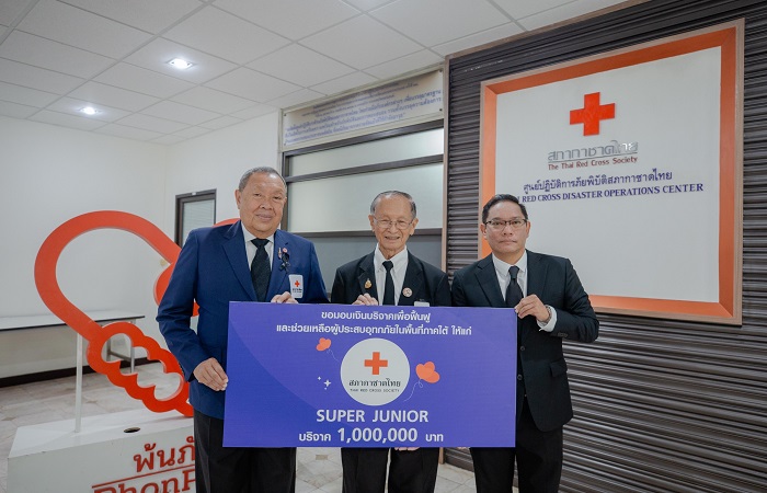 ท่ามกลางสถานการณ์อุทกภัยครั้งใหญ่ในพื้นที่ภาคใต้ที่ส่งผลกระทบต่อพี่น้องประชาชนในวงกว้าง บริษัท เอสเอ็ม ทรู จำกัด (SM True) ต้นสังกัดในประเทศไทยของศิลปินค่าย SM ENTERTAINMENT (เอสเอ็ม เอนเทอร์เทนเมนต์) โดย คุณเทพ สินธวานนท์ รองประธานเจ้าหน้าที่บริหารสายปฏิบัติการ ได้ร่วมกับ ‘SUPER JUNIOR’ (ซูเปอร์จูเนียร์) บอยแบนด์ระดับตำนานของเค-ป็อป ที่มีความผูกพันอันลึกซึ้งกับประเทศไทย ส่งมอบความห่วงใย และช่วยเหลือผู้ประสบภัยในยามวิกฤต โดยได้ร่วมกันบริจาคเงินจำนวน 4,000,000 บาท (สี่ล้านบาทถ้วน) แก่สภากาชาดไทย โดยมี พลโท นายแพทย์อำนาจ บาลี ผู้อำนวยการสำนักงานบรรเทาทุกข์และประชานามัยพิทักษ์ พร้อมด้วย คุณขรรค์ ประจวบเหมาะ ผู้อำนวยการสำนักงานจัดหารายได้ สภากาชาดไทย เป็นผู้รับมอบ ณ ห้องประชุมศูนย์ปฏิบัติการภัยพิบัติฯ ชั้น 2 อาคารเทิดพระเกียรติฯ สภากาชาดไทย เพื่อนำไปบริหารจัดการในการฟื้นฟูพื้นที่ประสบภัย รวมถึงจัดสรรถุงยังชีพ และสิ่งของอุปโภคบริโภคที่จำเป็นเร่งด่วน เพื่อบรรเทาความเดือดร้อนให้แก่พี่น้องชาวใต้ โดยมียอดการสมทบทุน ดังนี้: