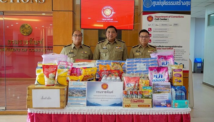 วันนี้ (2 ธ.ค.68) พ.ต.ท.ประวุธ วงศ์สีนิล อธิบดีกรมราชทัณฑ์ พร้อมด้วย นายชาญ วชิรเดช รองอธิบดีกรมราชทัณฑ์ และ นายพงษ์อภินันทน์ จันกลิ่น เลขานุการกรม ร่วมมอบสิ่งของบริจาคเพื่อช่วยเหลือผู้ประสบอุทกภัยภาคใต้ ในกิจกรรม “กรมราชทัณฑ์ ปันน้ำใจ สู้ภัยน้ำท่วมใต้” ณ บริเวณหน้าห้อง Call Center ชั้น 1 อาคารกรมราชทัณฑ์ โดยสิ่งของที่พี่น้องชาวราชทัณฑ์ ร่วมบริจาคฯ จะส่งต่อให้กับกระทรวงยุติธรรม เพื่อนำไปช่วยเหลือผู้ประสบอุทกภัยภาคใต้ต่อไป