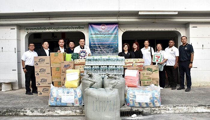 สมาคมหนังสือพิมพ์ส่วนภูมิภาคแห่งประเทศไทย (สภท.60 ปี) ได้เปิดรับบริจาคเฉพาะในกลุ่มสมาชิกและผู้ที่รู้จักคุ้นเคย เพื่อร่วมกันบรรเทาความเดือดร้อนของผู้ประสบภัยในครั้งนี้ โดยสิ่งของทั้งหมดจะถูกส่งมอบผ่าน ดร.นภินทร ศรีสรรพางค์ รัฐมนตรีประจำสำนักนายกรัฐมนตรี ซึ่งมอบหมายให้ ดร.วีณา ศรีสรรพางค์ ประธานที่ปรึกษาชมรมชาวใต้ราชบุรี เป็นผู้แทนรับมอบสิ่งของดังกล่าว และเพื่อจัดส่งต่อด้วยรถบรรทุกของตลาดศรีเมืองราชบุรี ไปยังพื้นที่ประสบภัยในภาคใต้