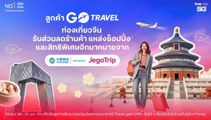 เที่ยวจีนสนุกสุดคุ้ม ! … ทรู คว้าดีล JegoTrip จัดให้ลูกค้า GO Travel สนุก สมาร์ท ทุกทริป ทุกแลนด์มาร์ก ทั่วจีน เน็ตแรง 5G ไม่สะดุด พร้อมรับสิทธิพิเศษมากมาย
