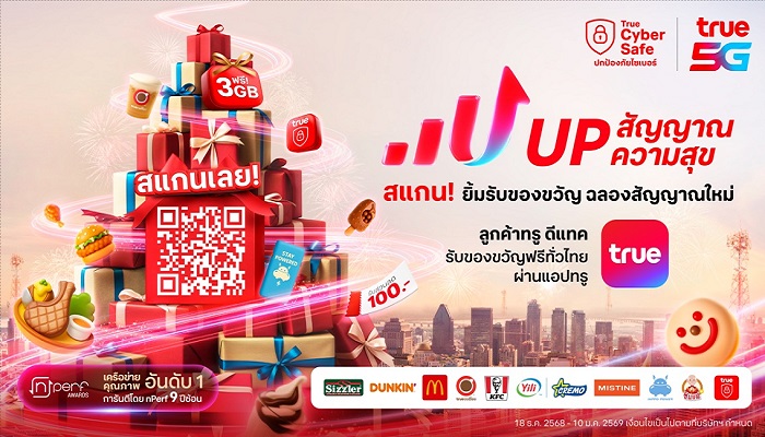 UP สัญญาณ UP ความสุขรับปี 2026! ทรู คอร์ปอเรชั่น ชวนลูกค้าเปลี่ยน ‘รอยยิ้ม’ เป็นของขวัญ ง่าย ๆ เพียง ‘เปิดแอป-ยิ้มกว้าง-รับของขวัญ’ สุดพิเศษฟรีทันที ตั้งแต่วันนี้ถึง 10 ม.ค.69