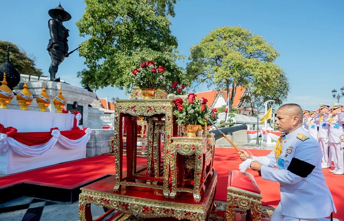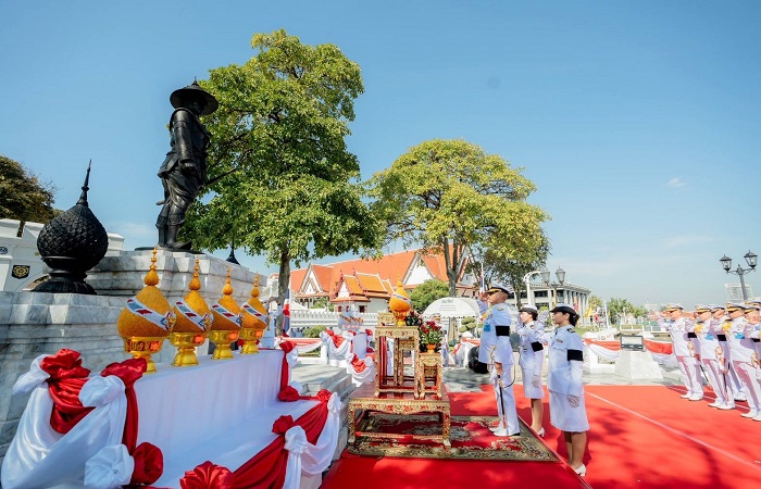 กองทัพเรือ จัดพิธีวางพานพุ่มถวายราชสักการะ สมเด็จพระเจ้าตากสินมหาราช เนื่องในวันสมเด็จพระเจ้าตากสินมหาราชประจำปี 2568
