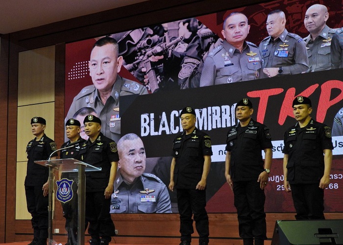 วันนี้ (29 ธ.ค.68) เวลา 11.00 น. ที่กองบัญชาการตำรวจปราบปรามยาเสพติด (บช.ปส.) พล.ต.อ.สำราญ นวลมา รอง ผบ.ตร./ผอ.ศอ.ปส.ตร. เป็นประธานแถลงผลการปฏิบัติการทลายรังเครือข่าย “Black Mirror TKP” พร้อมด้วย พล.ต.ท.สมประสงค์ เย็นท้วม ผู้ช่วย ผบ.ตร./รอง ผอ.ศอ.ปส.ตร., พล.ต.ท.อาชยน ไกรทอง ผบช.ปส., พล.ต.ต.ธีรเดช ธรรมสุธีร์ รอง ผบช.น., นายคณิศร ภาพีรนนท์ ผู้อำนวยการสำนักปราบปรามยาเสพติด สำนักงาน ป.ป.ส., พ.อ.พจฤทธิ์ รอบคอบ ผอ.สปส.ศปป.2 กอ.รมน. และ Miss Becky Kuo Taiwan Police Liaison Officer in Thailand เข้าร่วมฯ เพื่อตอกย้ำความมุ่งมั่นของรัฐบาลในการปฏิบัติการ “ต้องชนะยาเสพติด” ให้ได้อย่างเด็ดขาด ศอ.ปส.ตร.
