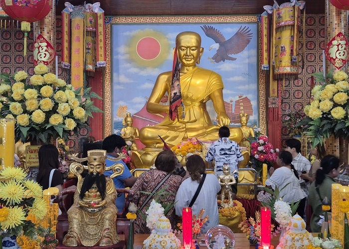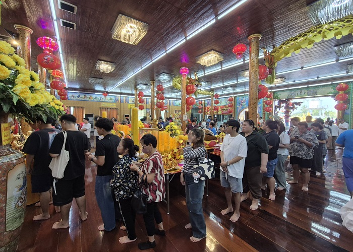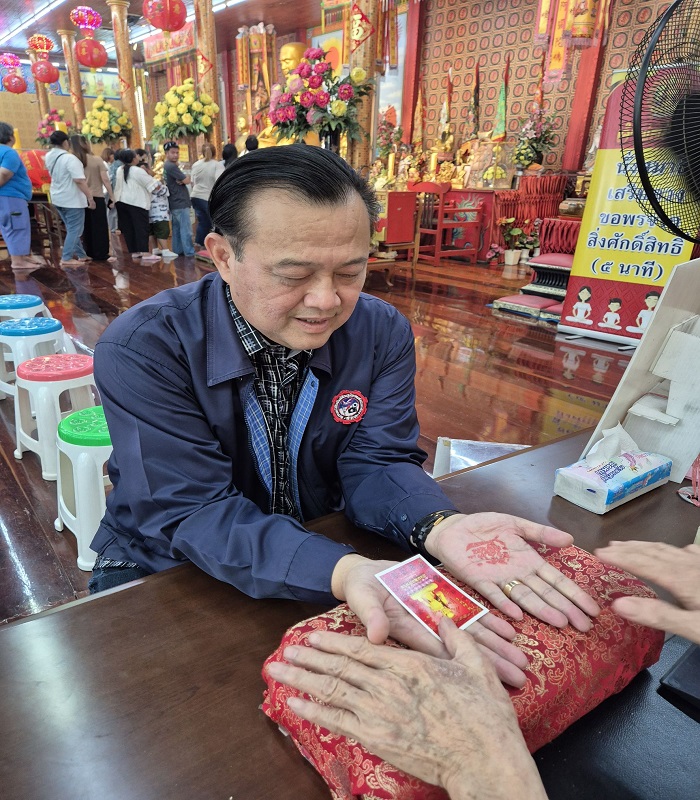 เมื่อวันที่ 1 ม.ค.69 ที่ศาลเจ้าพ่อสำเร็จ (โรงเจไท้เอ็กตั๊ว) อ.บ้านแพ้ว จ.สมุทรสาคร คุณอนุสรณ์ ตั้งนาวาดี ประธานโรงเจไท้เอ็กตั๊ว ศาลเจ้าพ่อสำเร็จ และ คุณสมบัติเจริญ ตั้งนาวาดี กรรมการโรงเจฯ พร้อมคณะกรรมการ ร่วมให้การต้อนรับศิษยานุศิษย์และผู้มีจิตศรัทธา ที่เดินทางมากราบไหว้ขอพรองค์เจ้าพ่อสำเร็จ ภายในงานมีพิธีเจิมหน้าผากเปิดดวง เจิมมือรับทรัพย์ โดยได้รับเกียรติจาก “ซินแสเซียว” จากประเทศจีน เป็นผู้ประกอบพิธีมงคลรับปีใหม่ ม้าทอง 2569