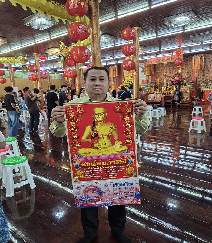 เริ่มต้นศักราชใหม่ ปีม้าทอง 2569 ขอเชิญศิษยานุศิษย์และผู้มีจิตศรัทธาใน “องค์เจ้าพ่อสำเร็จ” บ้านแพ้ว ร่วมพิธี เจิมหน้าผาก-เปิดดวง เสริมสิริมงคล พร้อมรับปฏิทินเฮง ๆ รับสิ่งดี ๆ ตลอดปี